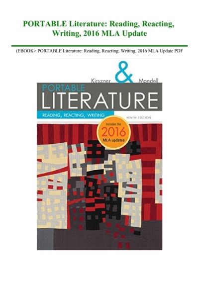 Read Online PORTABLE Literature Reading Reacting Writing 2016 MLA Update MindTap Course List Epub online is a convenient and frugal way to read PORTABLE Literature Reading Reacting Writing 2016 MLA Update MindTap Course List you love right from the comfort of your own home. Yes, there sites where you can get Epub "for free" but the ones listed below are clean from viruses and completely legal to use.